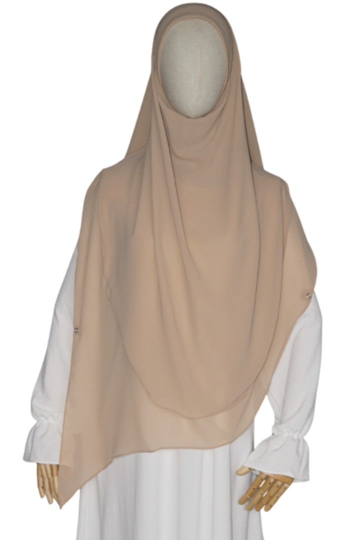 Safya Clipe Instant Khimar is Easy wear, elegant looks, comfy fabrics and the most important things, extra coverage of your aurah and snap button for ease Ibadah!